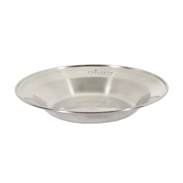 Leichter Edelstahlteller, der sich durch die Vertiefung prima für flüssige Speisen eignet. Der Teller ist stapelbar und kann daher platzsparend im Camper verstaut werden. Maße: 22 x 3,5 cm.
